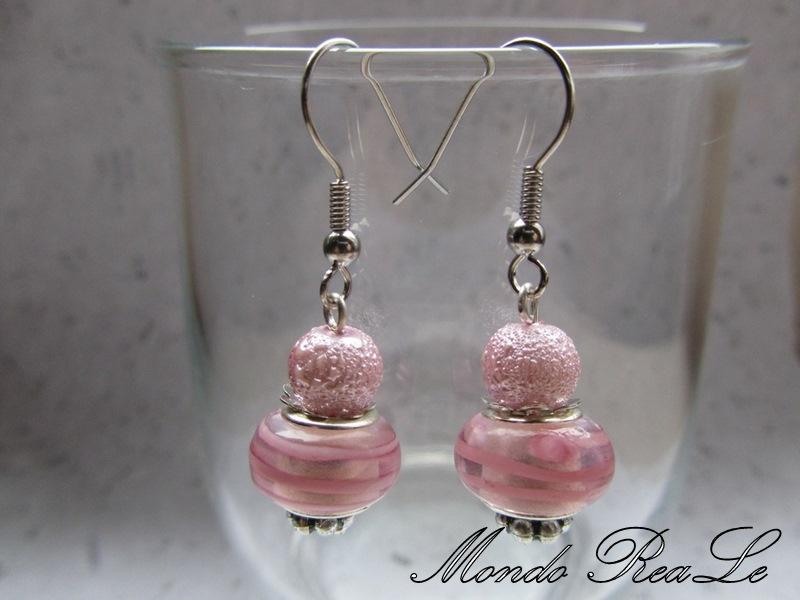 Růžové PANDORY náušnice zavěšené na afroháčku.