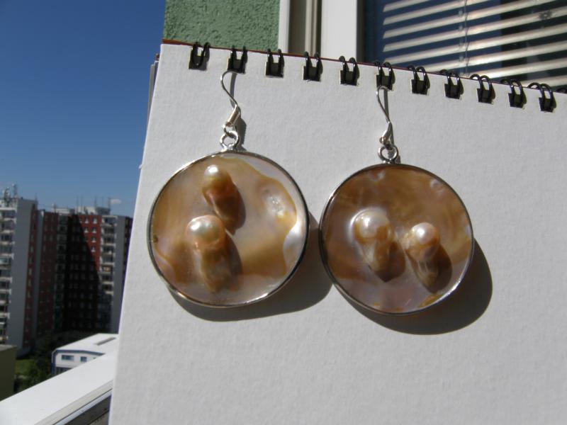 Náušnice perly v perleti, průměr 3 cm, ocínované okraje