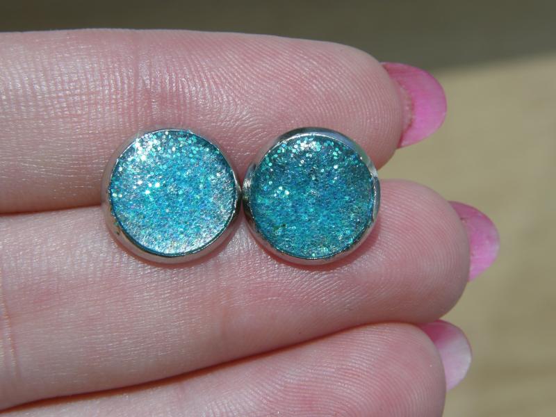 Náušnice s modrými třpytkami