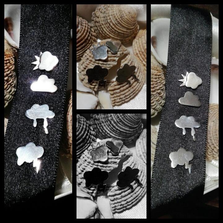 Ručně vyřezávané, stříbrné nausnice počasí 4ks. Lze libovolně kombinovat dle nálady. Zapínání na gumovou puzetu.