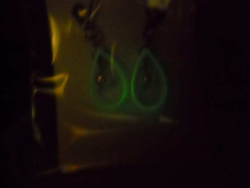 Náušnice o délce cca 4 cm jsou z chirurgické oceli a luminiscenčního plastu.