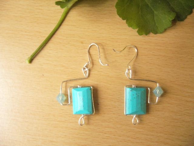 Nausnice ze stribrneho dratku , zdobene tyrkysovyma perlama.Hacek je po domluve mozno vymenit za protialergicky.Zarazky prikladam jako samozrejmost.