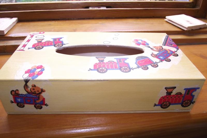 Vel 25x14x6 , barva okrová, přelakováno , vláčky ubrouskovou technikou.