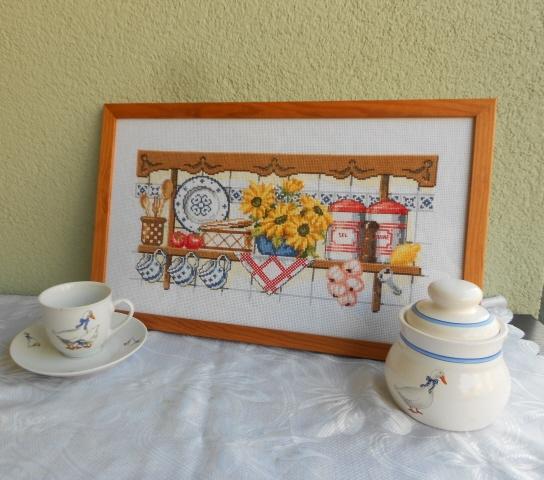 Obraz vyšitý křížkovým stehem na panamě, odborně zarámované pod sklem v kvalitním rámu.
