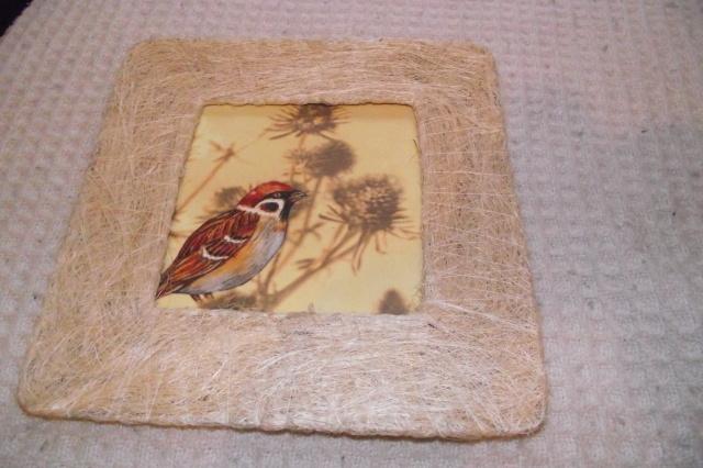 Obrázek na zeď -rámeček -sisal, obrázek solit, ubrouskovou technikou , přelakován.