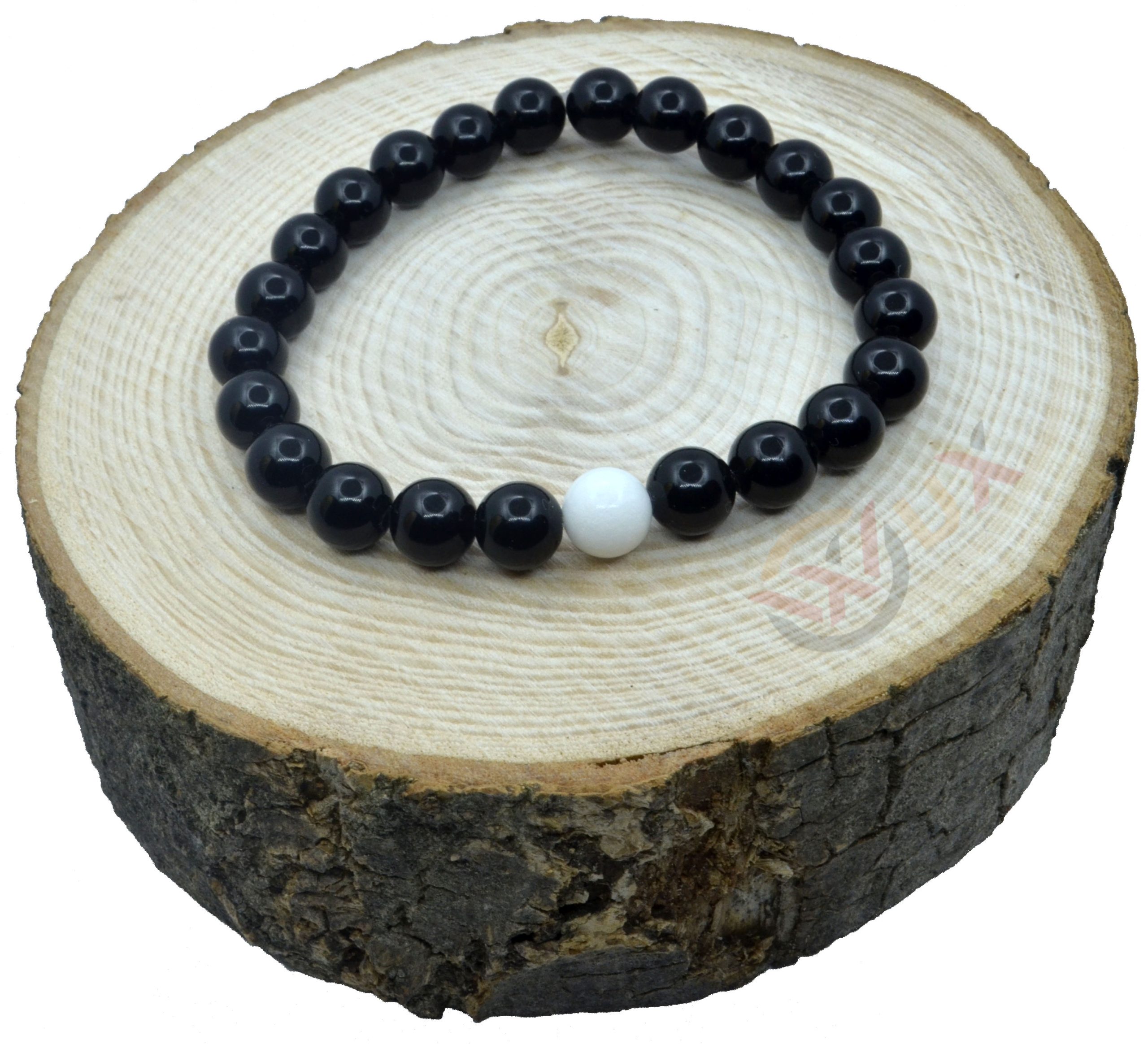 Decentní náramek z kamene černý Onyx (8mm) a korálku kamene bílý Obsidián (8mm) v provedení jin – Jang.