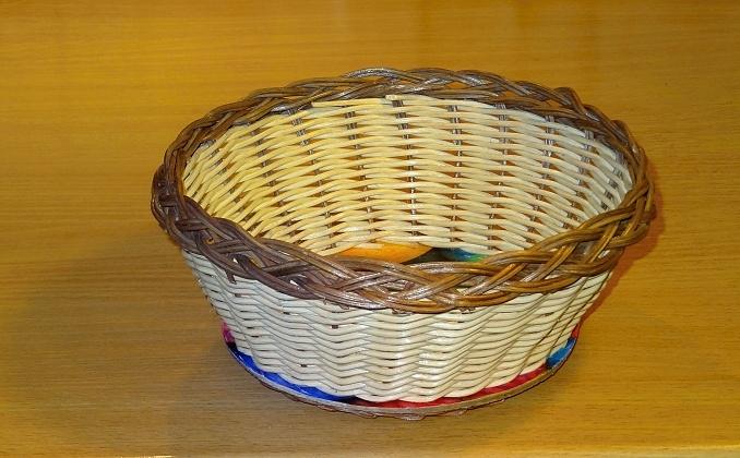 Ošatka – košík kruhový 14 cm, nahoře 20 cm. Dno pevné s obrázky nebo imitací dřeva. Barva krémová s hnědým okrajem. Kvalitní přírodní materiál. Možno dodat více kusů v barvách na přání.