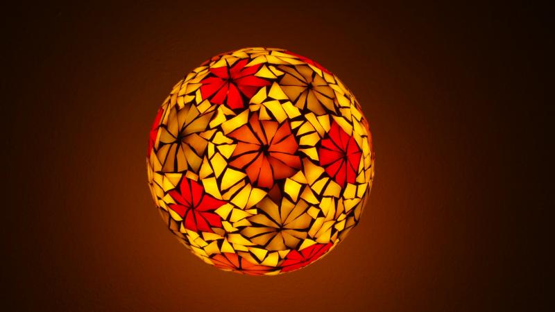 -mozaika z opálového skla, průměr 16 cm,ruční práce, možnost na stěnu,nebo na strop.