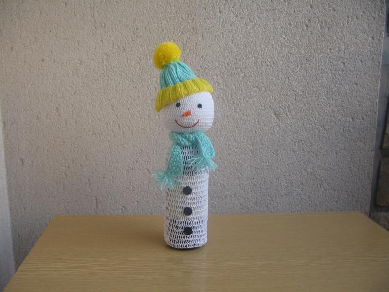 Jste pozvaní na oslavu? a přemýšlíte a nevíte? tady je jeden TIP! Ozdoba zůstává i po vyprázdnění obsahu 🙂 Háčkovaná ozdoba na láhev – sněhulák – vhodné k jakékoliv příležitosti. Tato ozdoba je vyrobena na láhev s průměrem 6-7cm výška láhve cca 30cm. Láhev není součástí zboží. Čepička a šála jde sundat. Ozdobu uháčkuji na láhev dle vašeho přání. Dodací lhůta dle vytíženosti, aktuální informace poštou.
