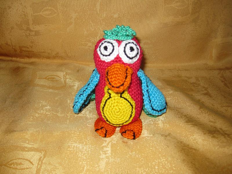 Ručně háčkovaný barevný papoušek. Výška 14cm. Možno prát na 30.
