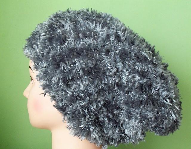 Čepice je ručně pletená ze silnější efektní chlupaté příze