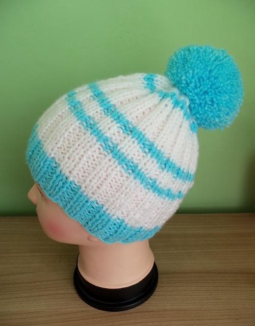 Čepice je ručně pletená z dvojité příze určené pro děti
