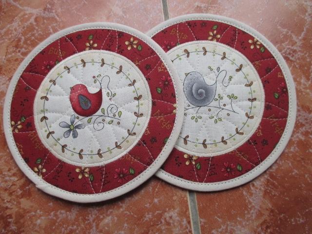 Podložky pod hrnečky,vyztužené,prošité do kytiček.