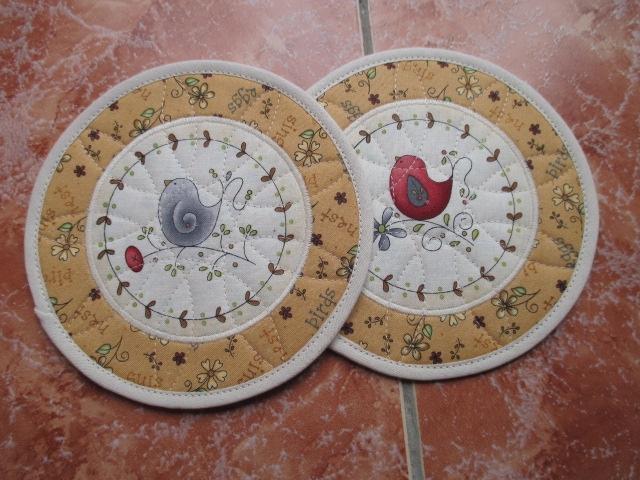 Podložky pod hrnečky,vyztužené,prošité do kytiček.