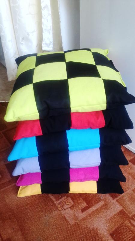 Dekorativní polštářky ruční výroba rozměr 40×40 plněné molitanovou drtí takže se při praní nezchuchlá a po natřepání je jako nový. Možné prát až na 60