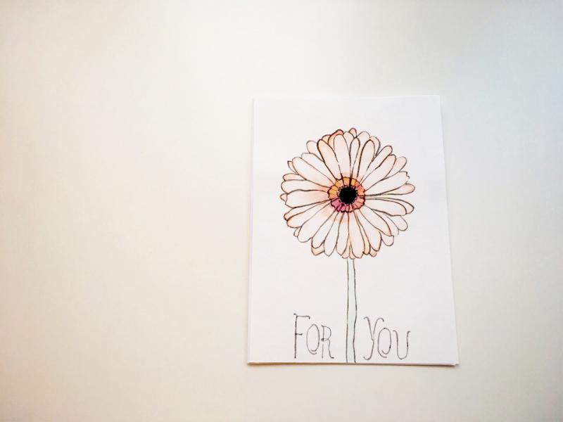 Přáníčko ruční práce "Květiny" – gerbery