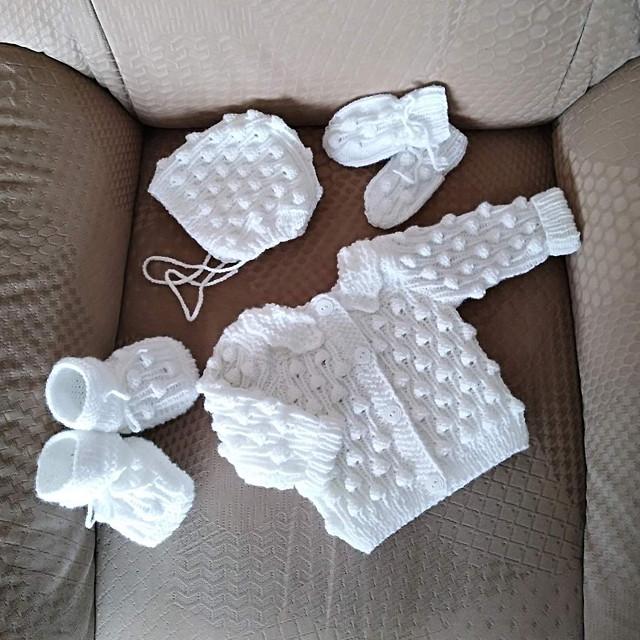 Ručně pletená pecičková soupravička. Obsahuje svetřík, čepičku, bačkůrky a rukavičky. Ihned k dodání v čistě bílé barvě, vhodné pro holčičky i kluky. Je možné uplést v jakékoliv barvě na přání – v případě zájmu 🙂 napište vnitřní poštou.