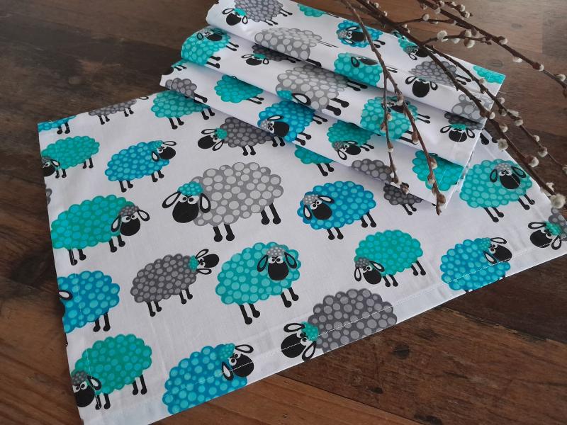 Nabízím prostírání šité z jarní, velikonoční látky s ovečkama, jednovrstvé.