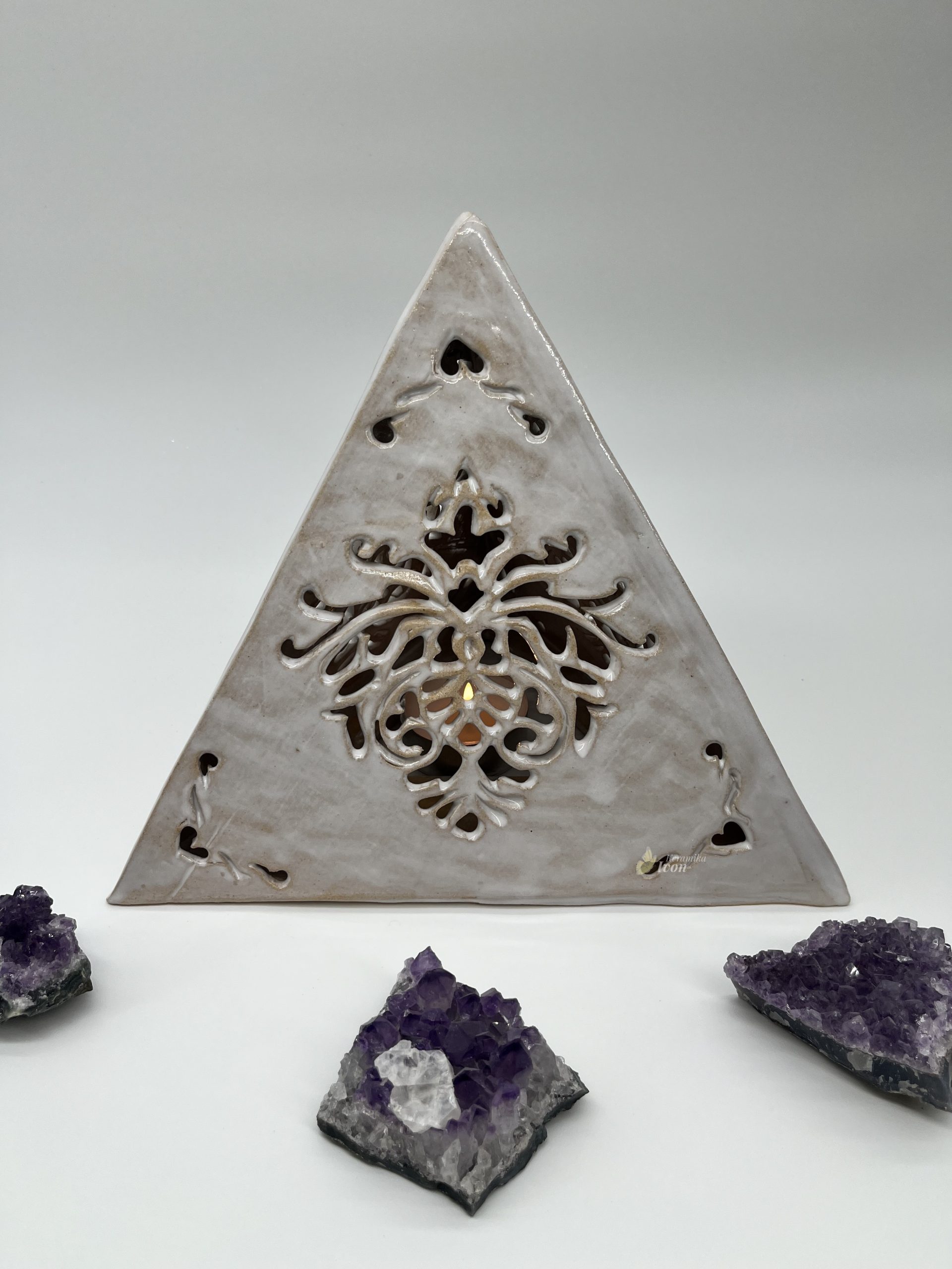 Zvolení světelného zdroje je na Vás, podle toho co je Vám milé. Spodní strana pyramidy oplývá podložkou na kterou lze položit i zapálenou svíci.    <br />