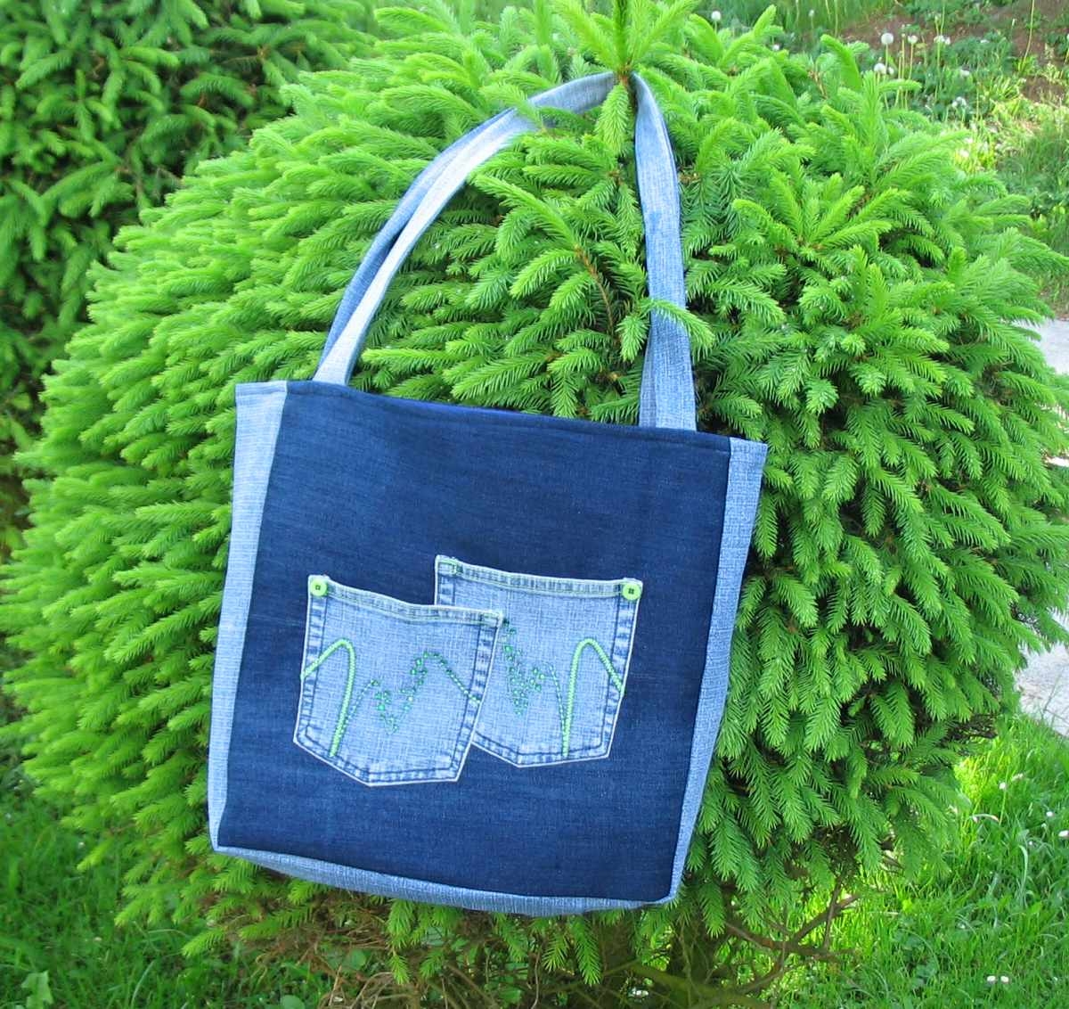Taška je ušitá z recy rifloviny kombinací více druhů. Rozměry tašky jsou šíře-38cm, výška 35cm (měřeno i s dnem tašky). Délka ucha je 68cm. Taška je vypodšívkovaná bavlněnou látkou a vyztužená. Na přední straně je menší funkční funkční kapsa. Uvnitř je uzavíratelná kapsa na zip s rozměry šíře 20cm , výška 18cm vhodná na telefon , peněženku, klíče,…