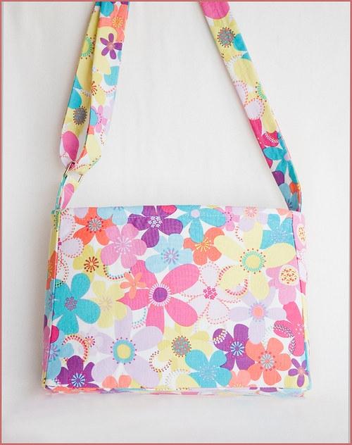 Malá hezká kabeluška pro malou slečnu ušitá z kvalitní bavlněné látky v překrásných barvách z ateliéru Michael Miller, vypodšívkovaná fialovou bavlněnou podšívkou s dělenými kapsami na obou stranách a poutkem s karabinkou na klíče. Je vyztužena ronarem a tak krásně drží tvar. Opatřena je nastavitelným popruhem k nošení přes rameno a bok.