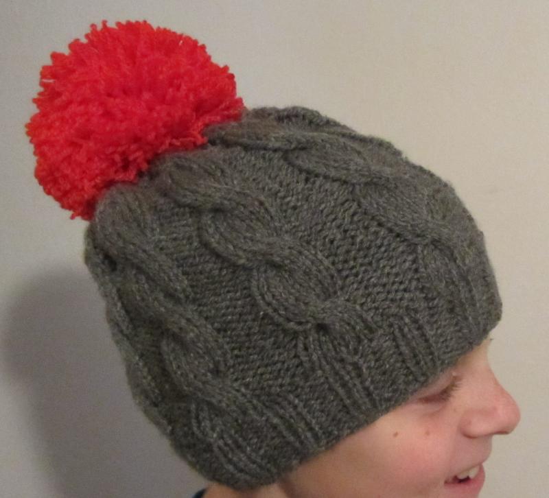 Krásná červená barva, která Vám prozáří zimní den, ve které Vás nikdo nepřehlédne. Šedá ručně pletená čepice s copánkovým vzorem a velikou červenou bambulí. Pletená ze 100% akrylu. Výška 21 cm, obvod 52-58 cm.