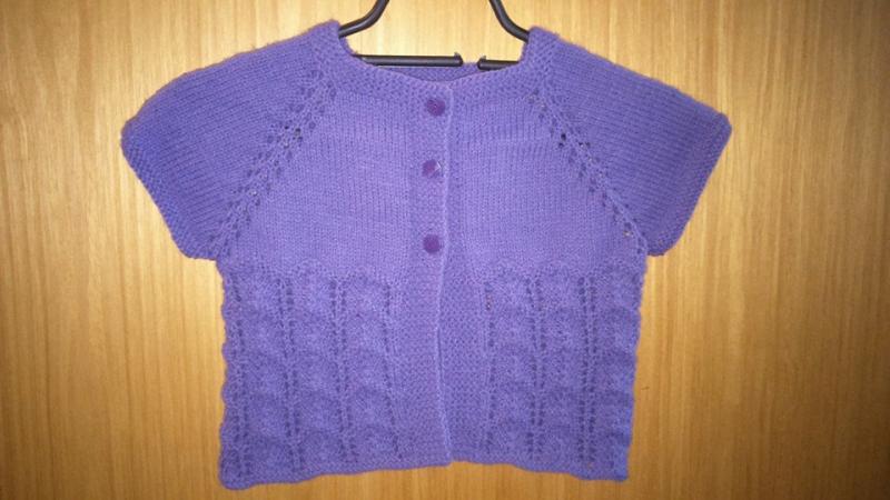 Ručně pletený kabátek pro holčičku cca 1,5 – 2 roky, barva fialová