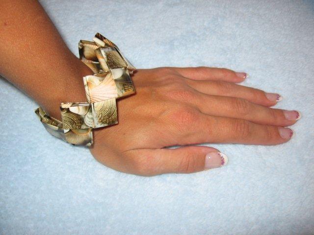 Ručně skládaný náramek metodou jako Candy bags. Je omyvatelný, odolný proti otěru. Materiál : papír, lepící páska, průměr náramku je 6,5cm – pasuje na většinu zápěstí.