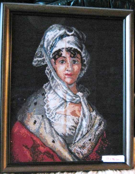 Ručně vyšívaný obraz o rozměrech 57x46cm. Obraz je zarámovaný a zasklenný.
