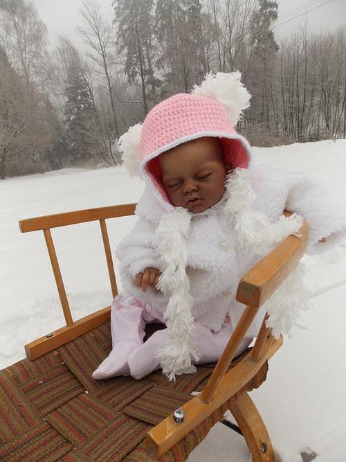 Něžná teploučká čepulka, zdobená kožešinkou.. Tentokrát vše v jemných barvičkách