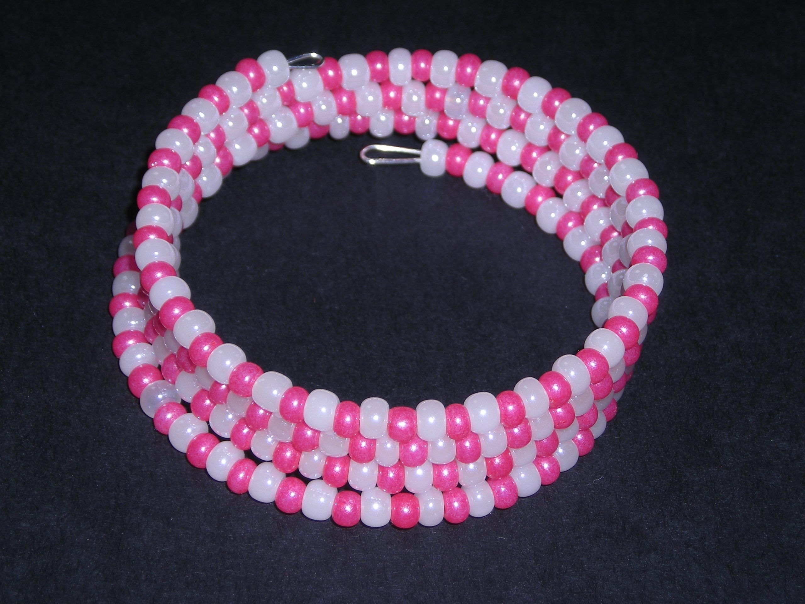 Růžovobílý náramek je hravou kombinací růžových a bílých korálků, vhodný pro holčičky, dívky i ženy.