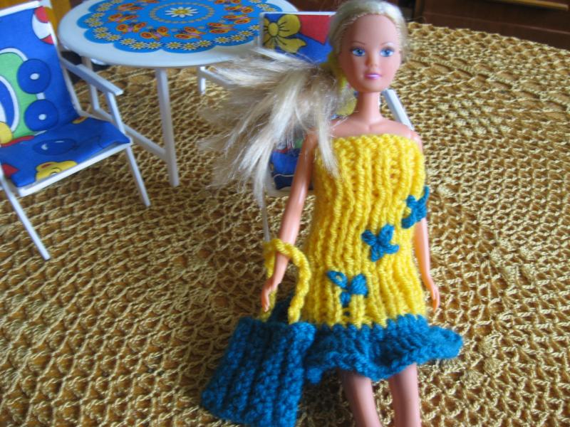 Pletené šatičky na panenku Barbie – Modrá je dobrá.