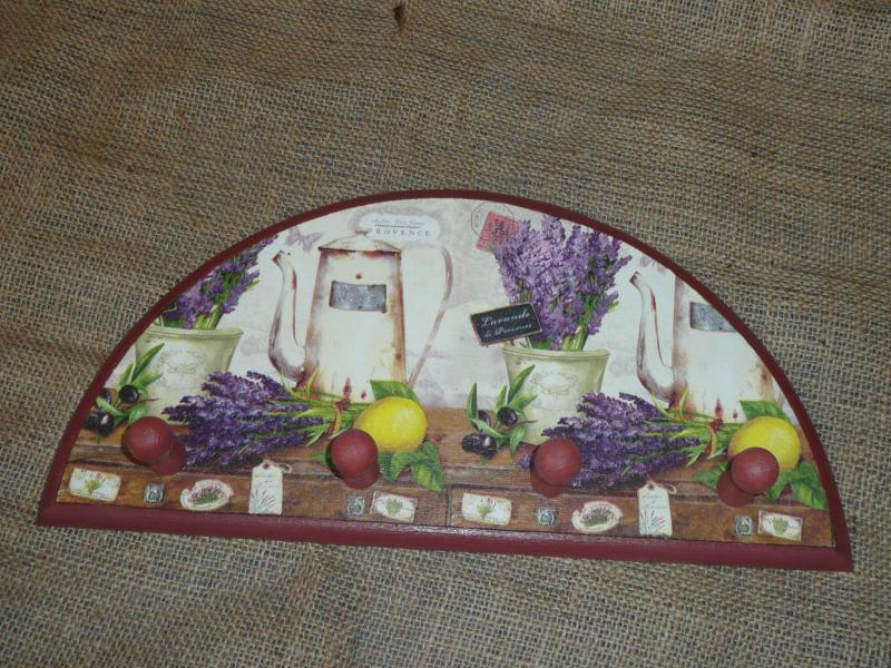 Upravený technikou decoupage a přelakován lakem vhodným pro styk s potravinami.