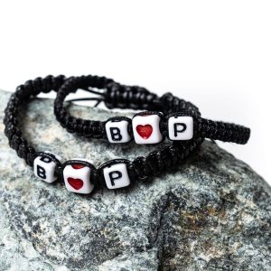 Originální náramky párové černé – iniciály se srdíčky Černé, Bílá