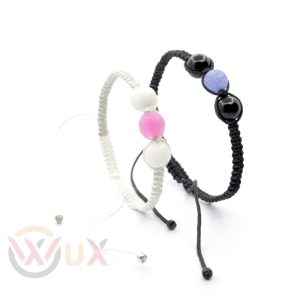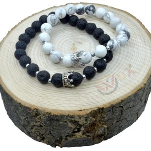 Párové náramky –Bílý Howlit + Černá Láva s Korunkou