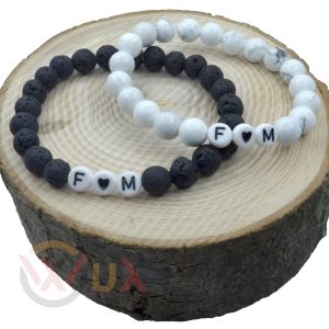 Párový náramek s magnetickým srdíčkem z hematitu Černý, Černý