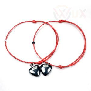 Párový náramek s magnetickým srdíčkem z hematitu Černý, Červený