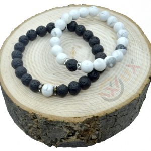 Párový náramek s magnetickým srdíčkem z hematitu Červený, Černý
